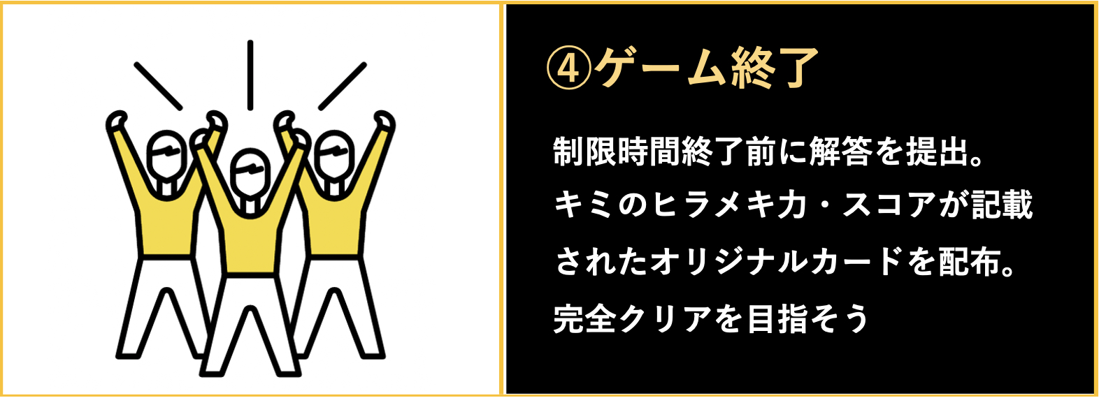 ■制限時間終了後にキミのヒラメキ力を測定!スコアが記載されたオリジナルカードをプレゼント。完全クリアを目指そう!